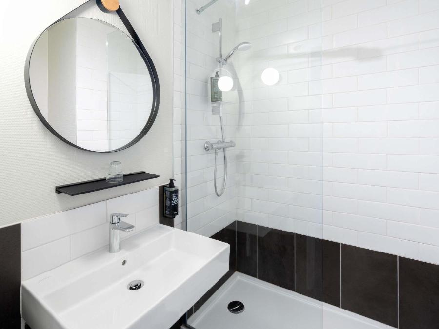 In the private bathrooms, chrome fixtures accompany a glass-enclosed shower. Thick towels dry quickly thanks to a clever ventilation system, while the anti-fog mirror makes it easy to get ready at any time of the day.