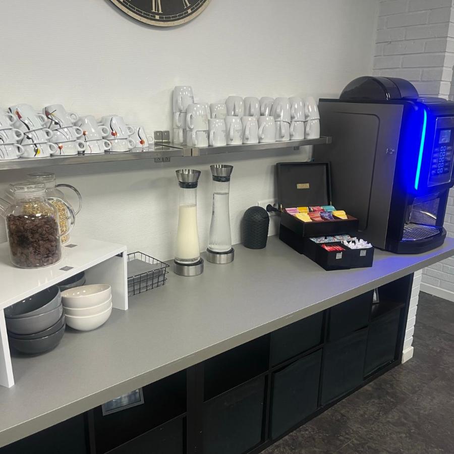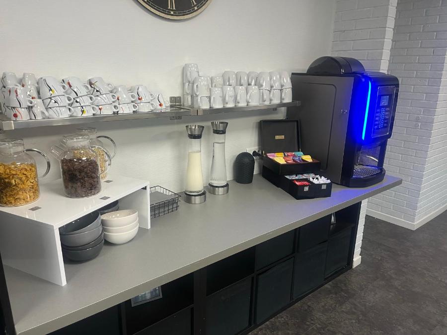 Cerca del mostrador, un bar-salón completamente renovado sirve bebidas calientes por la tarde y refrescos hasta la noche. Los sillones cómodos, la prensa del día y la conexión Wi-Fi ilimitada transforman este espacio en un pequeño refugio antes o después de las visitas.